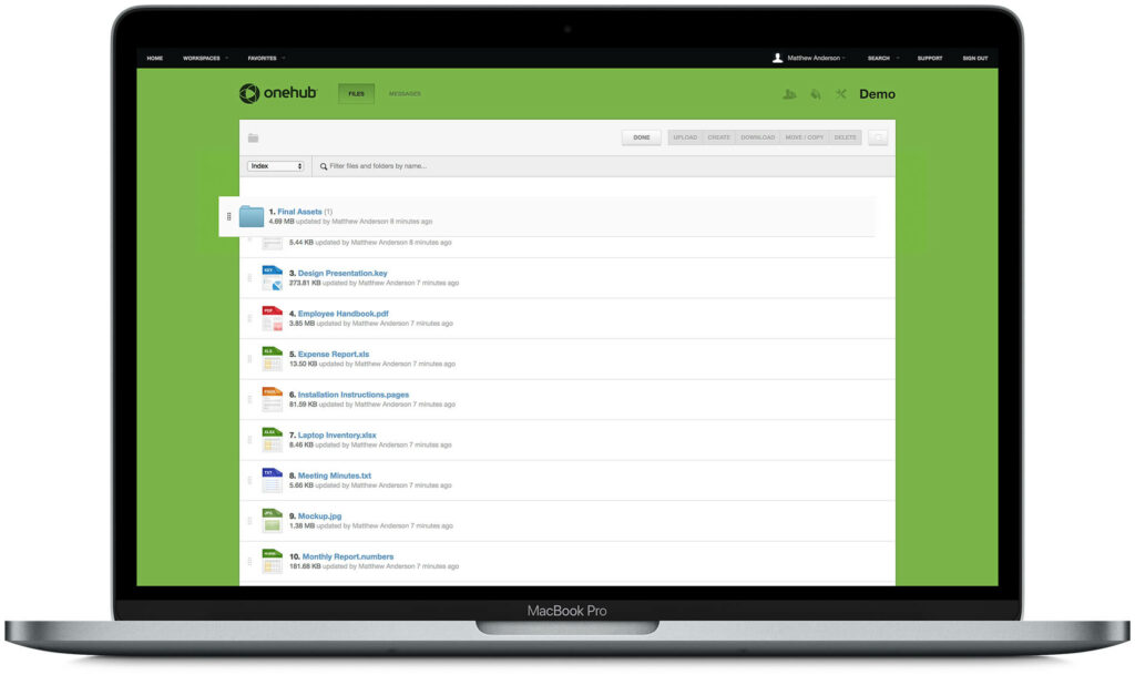 - Audit trails. You can view who has accessed your documents and when. This Onehub feature helps you to manage file accessibility and security.